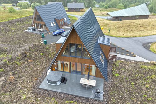 Introducing the Double A-frame:Our engineers have combined our trio 75 and duo 57 into one house creating a spacious living area and wellness unit with sauna to the other wing. The house includes 2 be ...